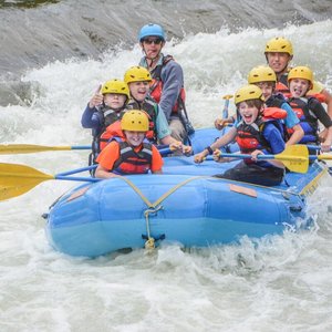 Thrilling outdoor adventures! Campers tackle a challenging ropes course, zip line through scenic views, and explore a gold mine. They take on rapids...